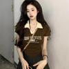 Korean Chic Women's Short-Sleeved Knit Polo Top