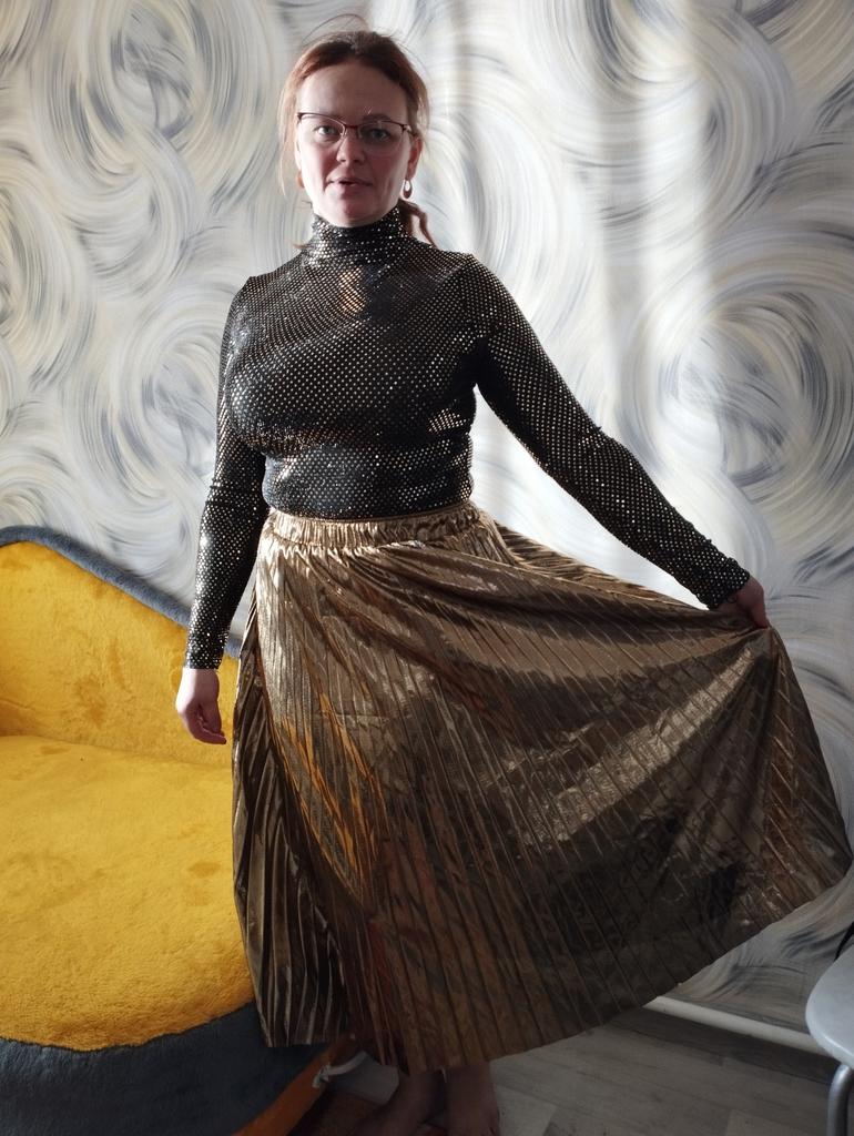 👍 Pěkná sukně) 😎 Opravdu, jak všichni psali - těsný pás... 🔸️trochu máty...nevím jak to narovnat, ale neřeknu, že to kazí vzhled... 🔸️úhledně ušité, vypadá zajímavě, doporučuji)))