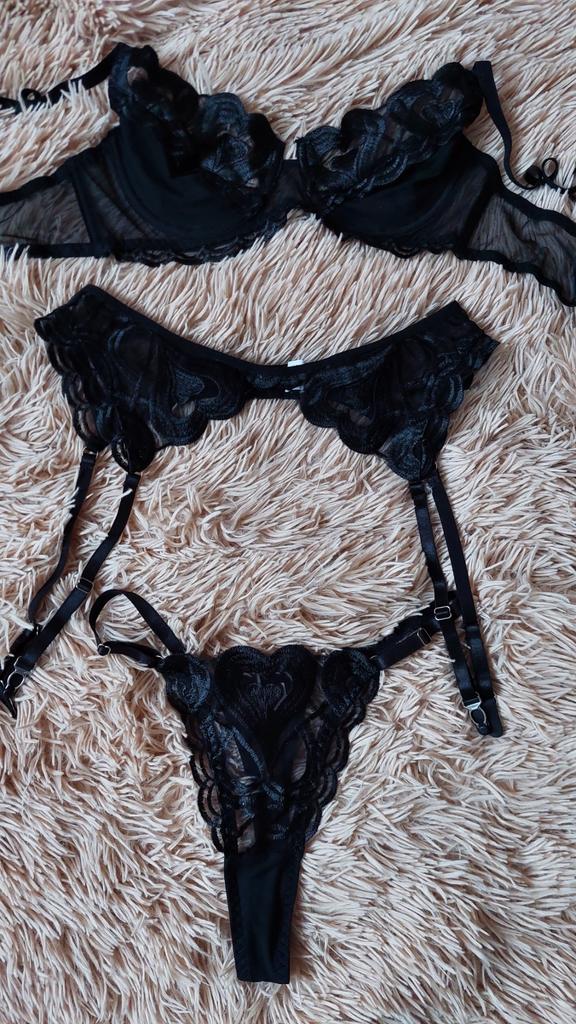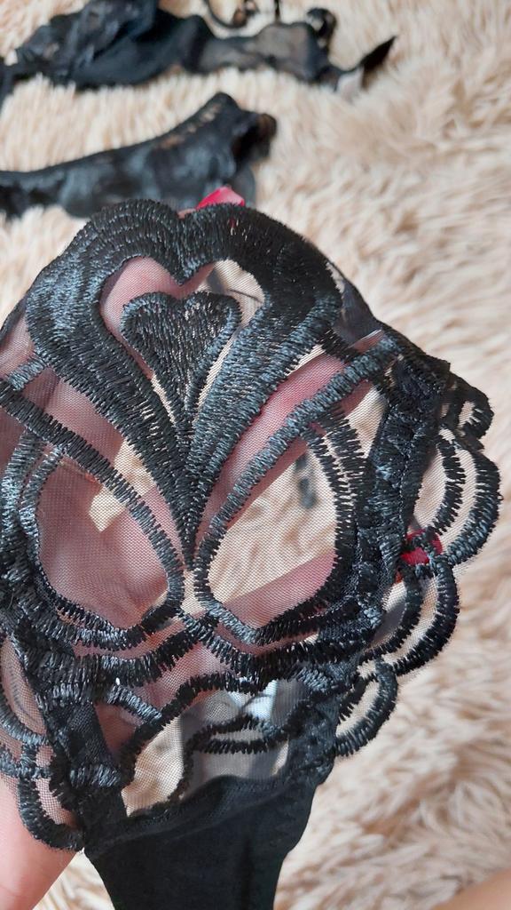 Krásné prádlo,krásná krajka.I když jsem štíhlá,vzala jsem si velikost L,protože mám velikost poprsí 75F.Skoro sedí;) Tanga a pásek jsou trochu velké, i když podle mě velikost L odpovídá M.