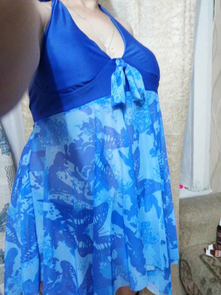 Women's Fashion Sexy Print Bikini Two Piece Halter Asymmetric Hem Swimdress Tankini Set