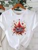Christmas Fashion Print T-shirt New Year Women Clothes Winter Watercolor Style Cute O-neck Graphic Lady Casual Female Shirt Tee