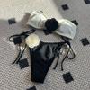 Jednobarevné Rose Tube Top Stahovací popruh Pásek Split Plavky Bikiny