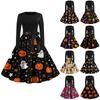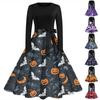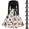 Dámské módní Halloweenské šaty s dlouhým rukávem s potiskem a kulatým výstřihem