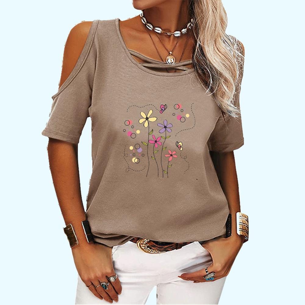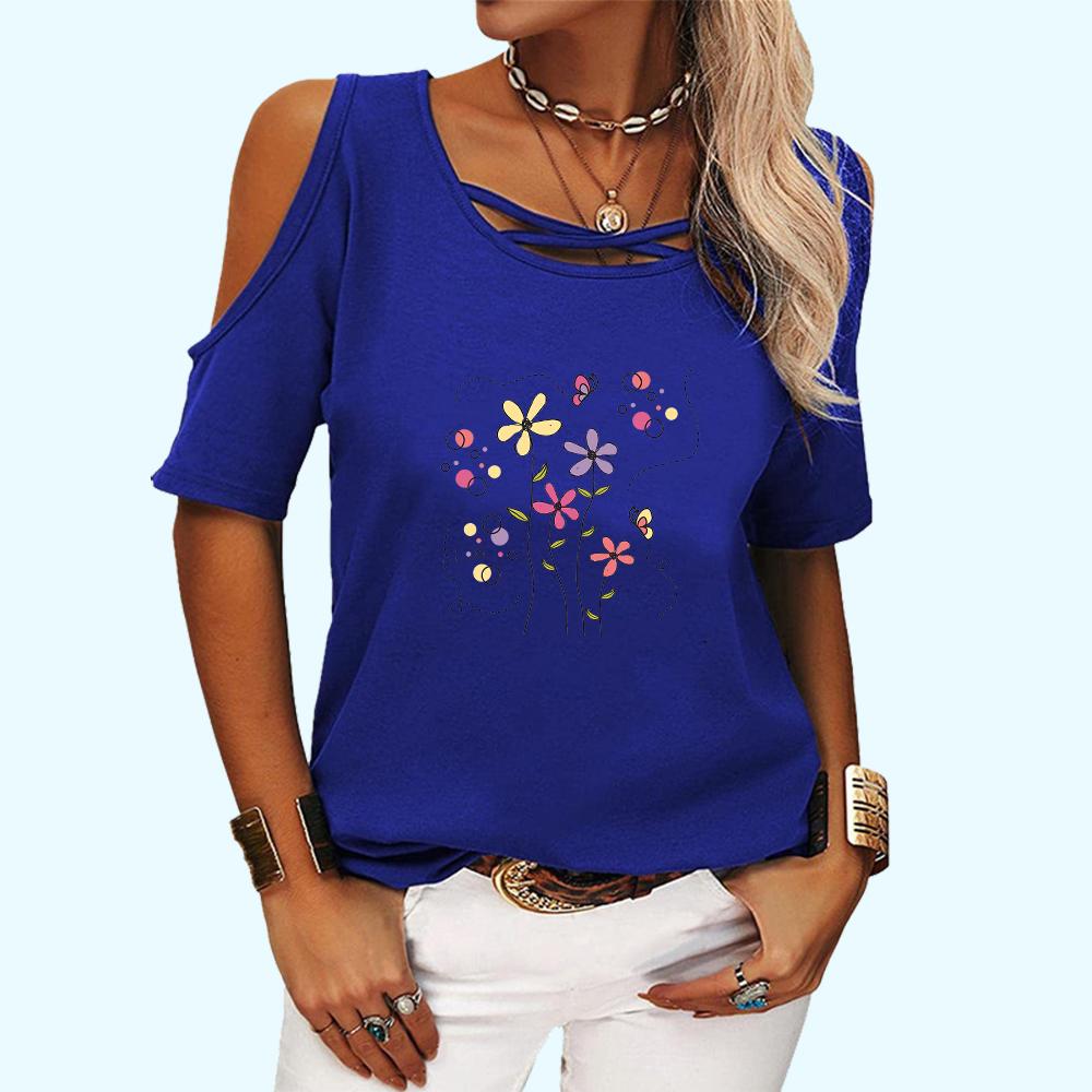 Ženy Ležérní Tričko s vypnutým ramenem Jaro Léto&podzim O Neck Tričko s květinovým potiskem Dámská móda Top s krátkým rukávem