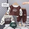 Podzimní dětská svetrová souprava pro chlapce s výšivkou písmen, s dlouhým rukávem a kalhotami, dvoudílná souprava