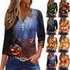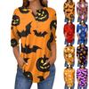 Women's Fashion Casual Halloween Print Drop Shoulder Long Sleeve V-Neck Ladies Tops