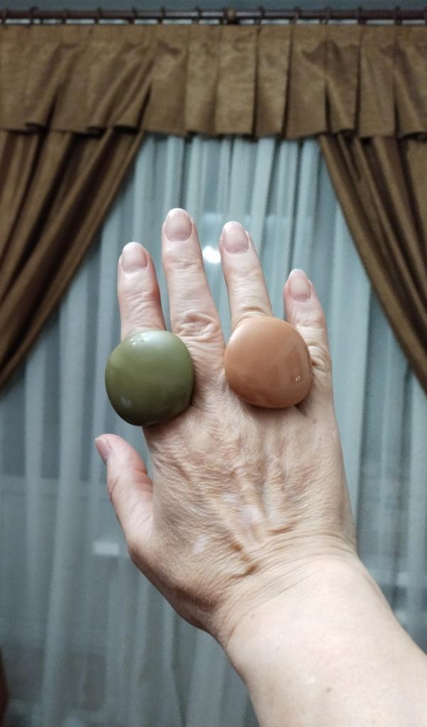 Schöne Ringe. Allerdings ist der orangefarbene im Bild, in Wirklichkeit in braun. Sieht am Finger aber gut aus. Bin trotzdem zufrieden.