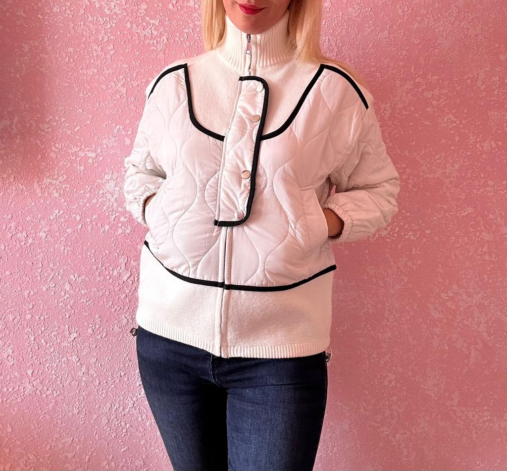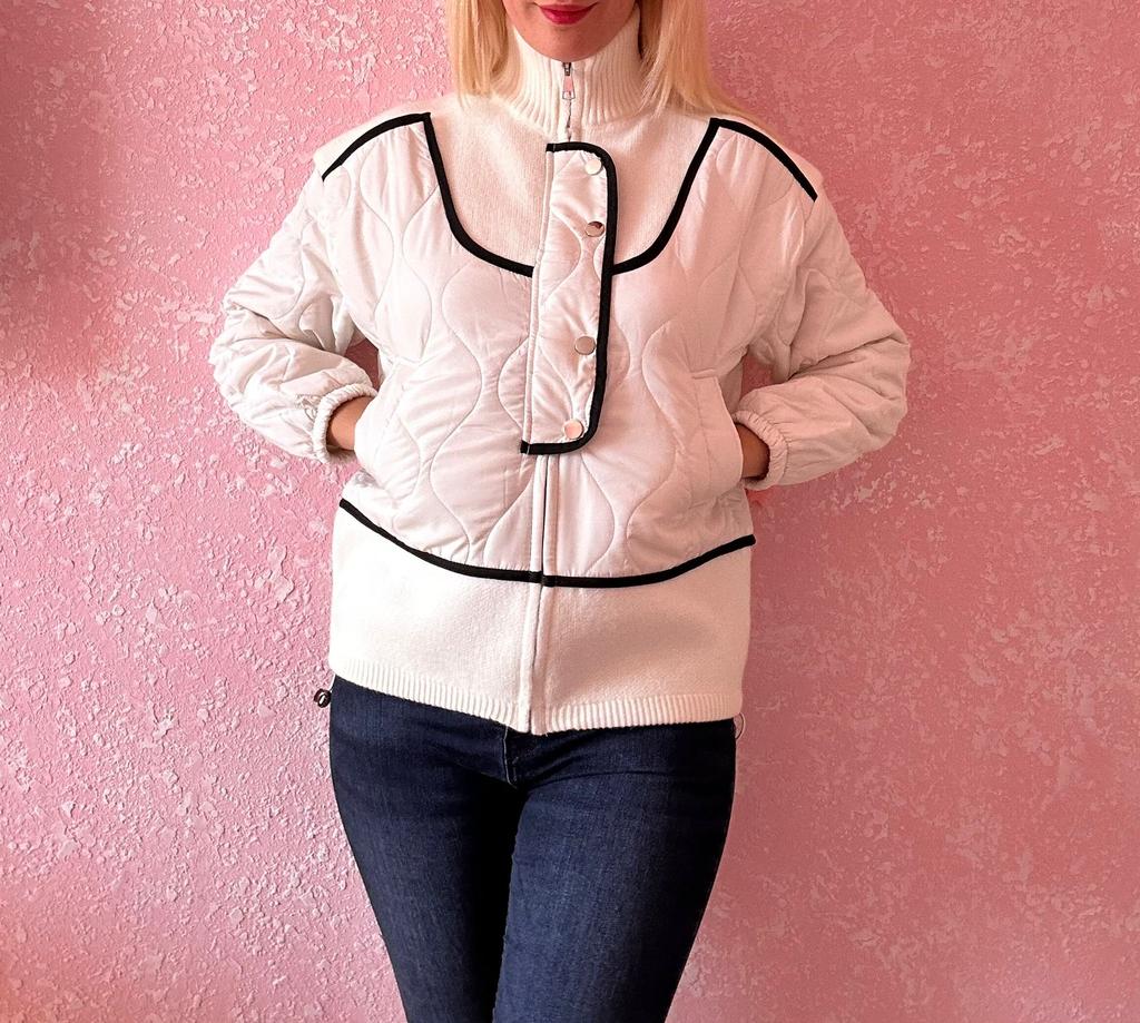 Autumn and Winter Stand-up Collar Sweater Jacket Women Loose Plus Size Color Collision Splicing Cotton Clothing Knitted Cardigan