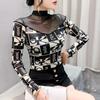 Printed Mesh Base Shirt for Women In Autumn New Fashionable Inner Wear Plush Thickened Warm T-shirt Top