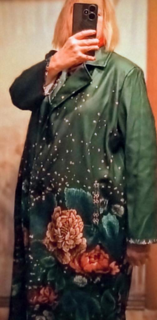Dámská bunda s dlouhým rukávem a klopou s potiskem dlouhý kabát
