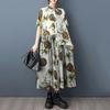 XITAO Print Shirring Pocket Turn-down Collar Dress GYX1616