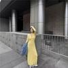 Elevate your seasonal wardrobe with this chic long-sleeve, slim-fit dress, perfect for both spring and autumn. Crafted from high-quality polyester, the dress features a trendy combination of yellow and white hues. Its lightweight and breathable fabric ensures comfort and style, making it an ideal choice for various occasions.