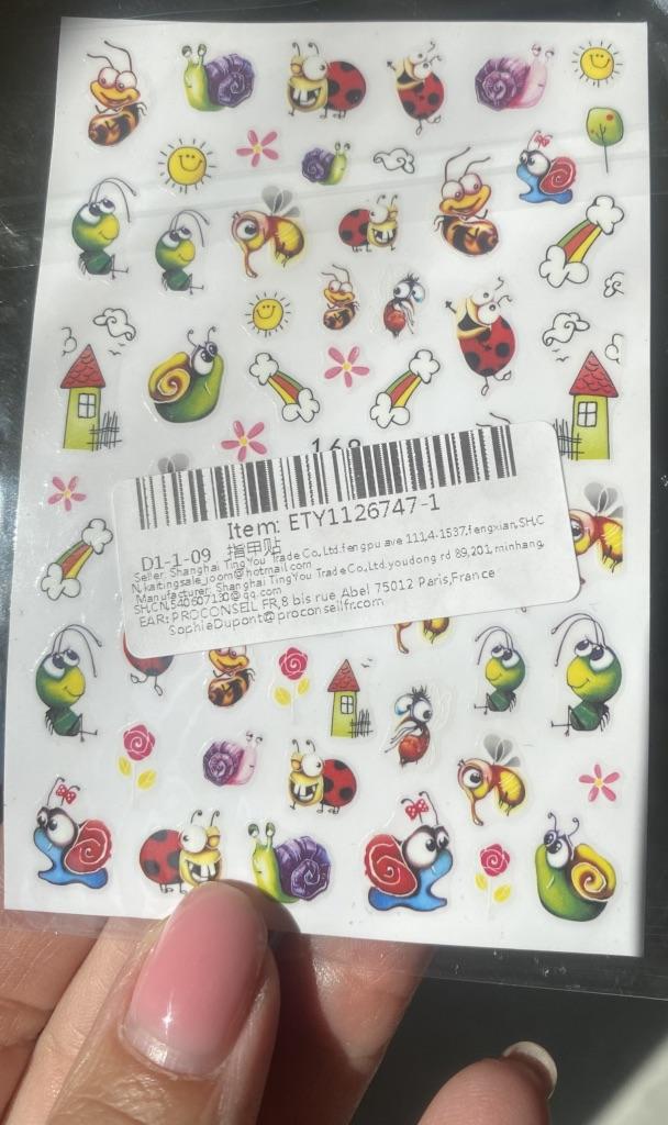 1ks samolepka na nehty roztomilý mravenec Včelka beruška sukulentní rostlina duhový posuvník samolepky na manikúru