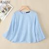 ZANZEA Dámská ležérní halenka s kulatým výstřihem a 3/4 rukávem s volným pruhem