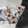 Ultra tenké průhledné dámské ponožky s oddělenými prsty, vzor červených třešní, letní křišťálové hedvábí, prolamované průsvitné dvoupalcové japonské ponožky Tabi
