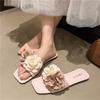 2025 summer new open-toed flower casual beach women's cool slippers low-heeled flat bottom women's high-end sense