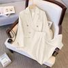 This Women's Professional Suit Set offers an elegant attire option crafted specifically for spring and autumn occasions. Designed for college interviews and as a hotel manager uniform, this set combines style and professionalism. Made entirely from high-quality polyester, it ensures both comfort and durability. The suit set presents a polished look, featuring a well-tailored blazer and coordinating pants, making it a perfect choice for individuals seeking a refined appearance.