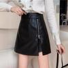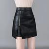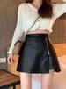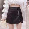 Korean Style High-Waist Irregular Zipper PU Leather A-line Midi Skirt for Women, 2025 Collection