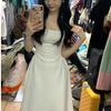 2024 Women's Black Spaghetti Strap Dress - French Style, Waist-Hugging, Hepburn Inspired, Square Neck, High Waist, Over-the-Knee Length