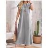 This elegant maxi dress is designed for plus-size women, featuring a versatile solid color and a flattering round neck. Crafted from soft artificial silk material, it offers a comfortable and luxurious feel. The dress is styled with short sleeves and a loose fit for effortless movement, while convenient pockets add a practical touch. Perfect for any occasion, this dress combines style and comfort seamlessly.