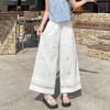 Korean Textured Cream Lace Openwork Pants - Women's Spring/Summer 2025 Petite Patchwork Casuals