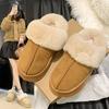 Fleece thick-soled wool slippers, female genuine leather snow boots, one foot outside the women, wearing cotton shoes