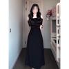 One-word shoulder off-the-shoulder black dress women's summer casual new beautiful puffy bud skirt