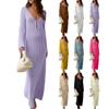 European-American Hollow Texture V-Neck Button Backless Long-Sleeve Beach Dress