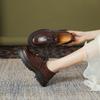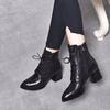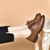 Round head small leather shoes women's autumn new mid-heel lace-up four-season small single shoes casual shoes