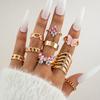 European and American new dripping butterfly imitation gemstone and diamond ring set Geometric twist ring seven-piece set