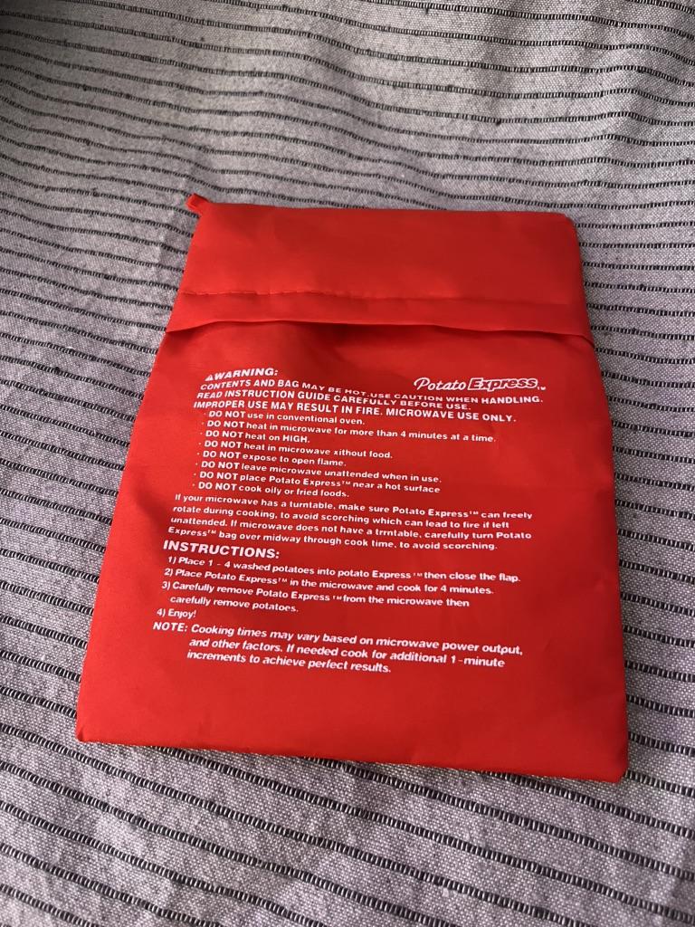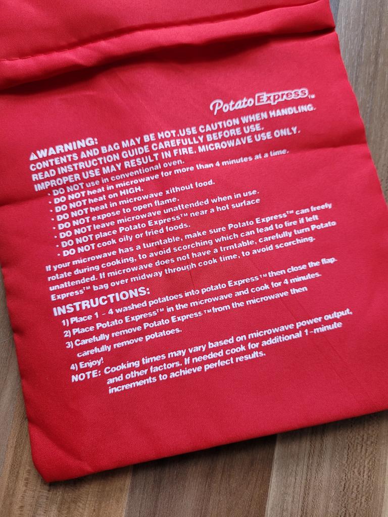 Praktický mikrovlnný sáček pro vaření brambor Vysoká kvalita Jednoduchá aplikace Návod k použití je v angličtině na sáčku Roztomilý design uvnitř Super použitelné a bezvýhradně doporučitelné 👍👍👍