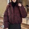 Bunda z PU kůže s péřovou výplní, Dámská krátká vatovaná bunda, Bunda typu "bread", Malá vatovaná bunda, Větruodolná bunda