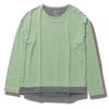 This three-quarter sleeve shirt is made of 100% polyester, which is highly absorbent and quick-drying, yet has a subtle sheen and a soft, cotton-like texture. The layered collar gently wraps around the neck, creating a feminine, soft look. Weight: 160g