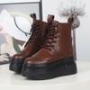 Fashion 12CM Cow Genuine Leather Spring Women Autumn British Motorcycle Fashion Ankle Boots Platform Wedge Flats Slip on Shoes