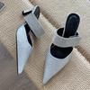 Fashion Fashion Bling Wide Strap Buckle Design Slippers Women Summer Sexy Pointed Toe Thin High Heel Slide Sandals Elegant Mules Heels