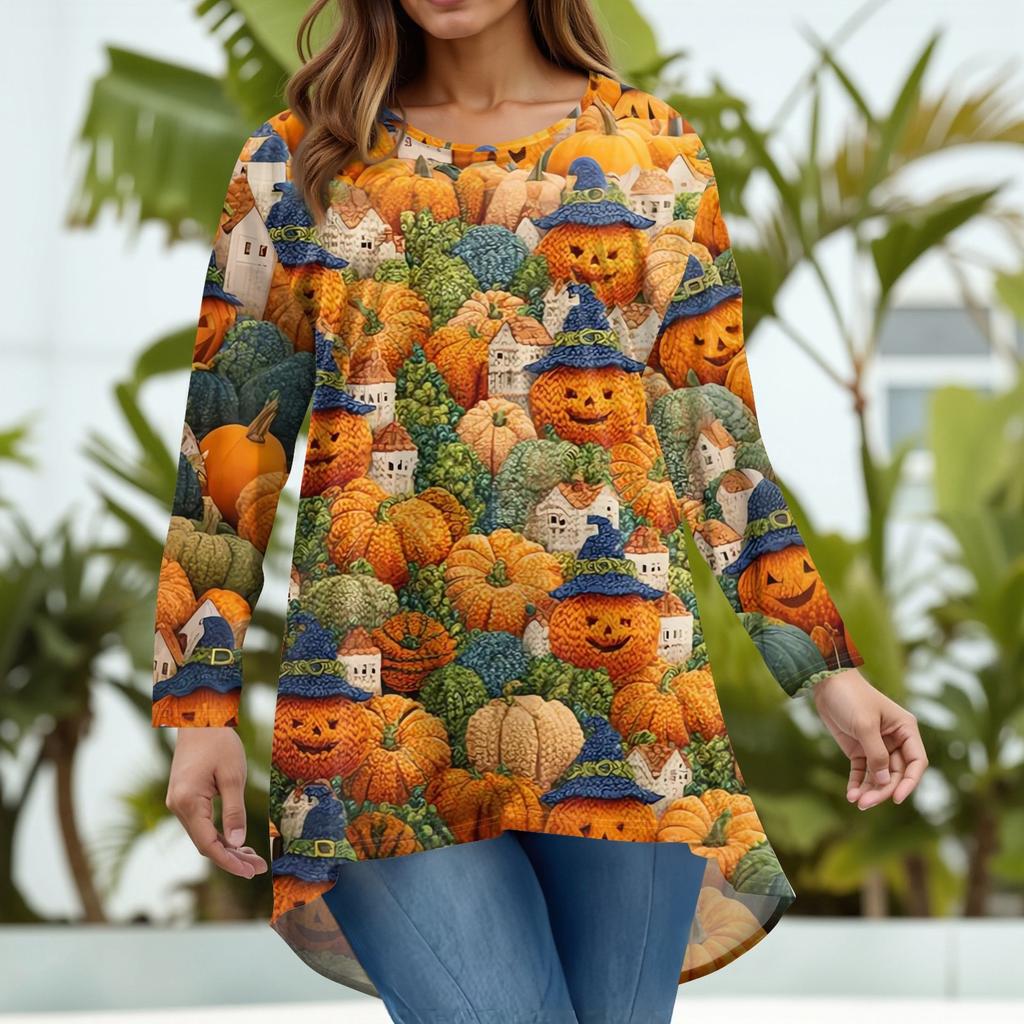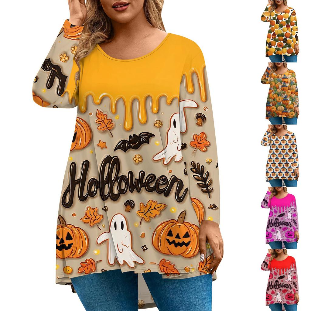 Dámská móda Velká velikost Kulatý výstřih Dlouhý rukáv Ležérní Halloweenský potisk Volný pulovr