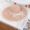 Breathable Wide Brim Straw Hat Elegant Lace Tied Sun Hat Stylish Beach Hat Girls
