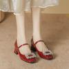 Autumn Women's Chunky Heel Mary Janes Shoes New Square Toe Rhinestones Square Buckle Heeled Shoes for Women Pumps Shoes