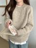 Soft Round Neck Pullover Sweater - Women's Autumn/Winter Loose-Fit, Solid Color Knitted Top with Long Sleeves