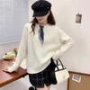 Autumn and winter cute girl feeling full of new loose versatile bow round neck knitted pullover sweater women