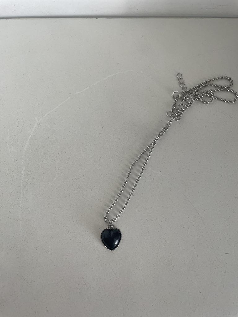 iF ME Κομψές ραφές Ασημένιο κολιέ Καρδιά Φούντα Διαφανές κρεμαστό κολιέ Chain Choker Κοσμήματα Αξεσουάρ