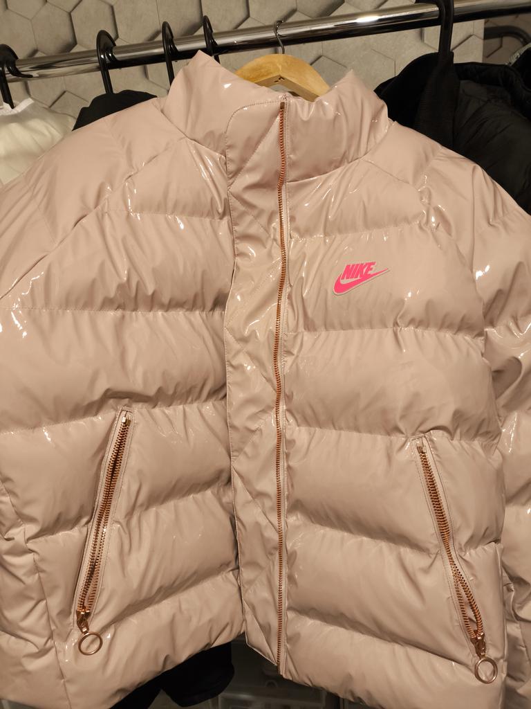Nike Solid Color Logo Glossy Stand Collar Long Sleeve Cotton Jacket Women Tops Pink FQ3575-601