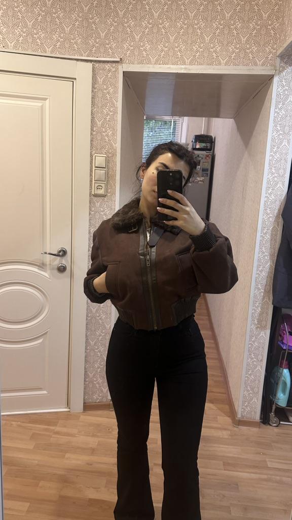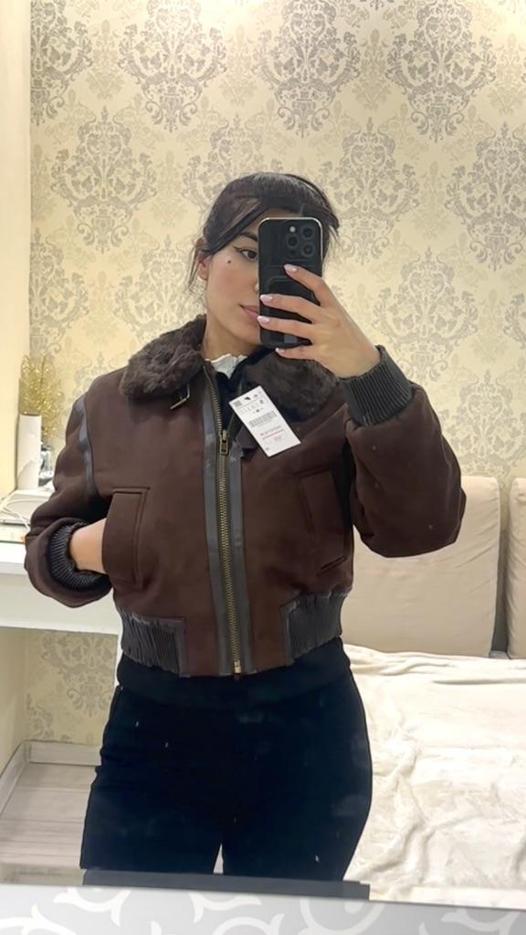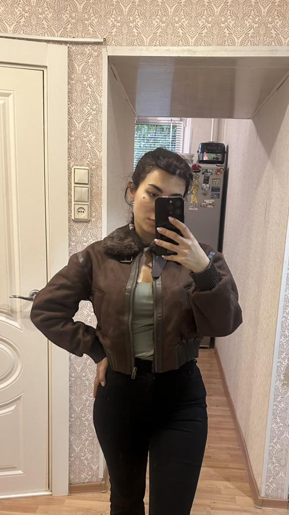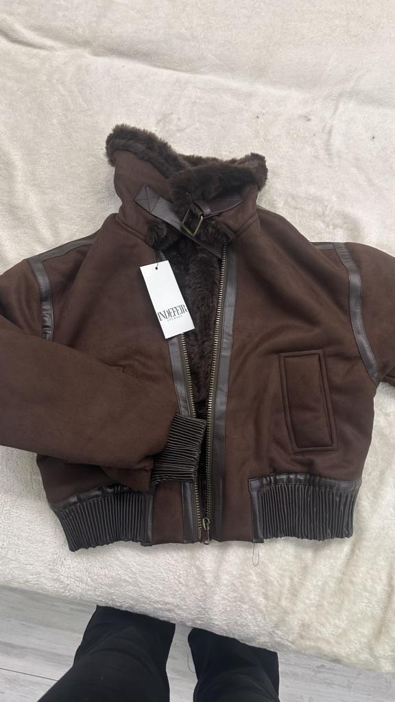 2023 Women's Warm Brown Fur Motorcycle Jacket - European & American Lapel Style
