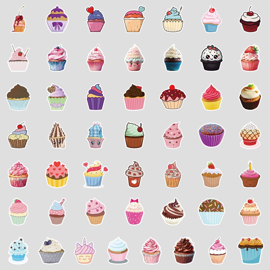 50 Cupcakes Doodle Stickers Water Cup Suitcase Waterproof Decorative Stickers Creative DIY Stationery Stickers