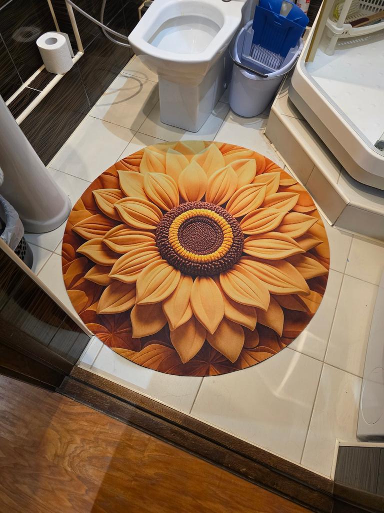 Sunflower Plush Comfort: Experience the luxurious comfort of a sunflower-shaped rug featuring a plush floral pattern surface combined with innovative diatomaceous earth technology for a cozy and practical bathroom essential.
