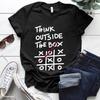 Think Outside The Box Printed Women T-Shirts, Women's Casual Tee Shirts Clothing Short Sleeve Crew Neck Top for Summer & Spring