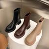 Grape Mom Western Chelsea Cigarette Boots Women's Retro Washed Medium Tube Elastic Boots Small Thick-soled Height Boots