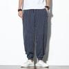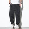 Four Seasons Men Disc Buckle Striped Harem Pants Breathable Cotton Linen Pencil Pants Buckle Casual Bloomers Fashion Trousers