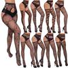 גרביים שחורים לנשים עם סט חגורה גרביוני רשת דייגים גבוהים הלבשה תחתונה סקסית גרביונים סקסיים גרביים עם הדפס פרחוני גרב תחרה רשת ארוכה