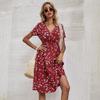 Women's V-neck Short-Sleeve Floral Slim and Sexy Dress